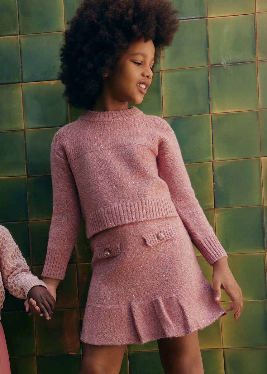 Abito Bambina Sol – Maglia Morbida con Colletto Peter Pan e Bottoni Effetto Conchiglia